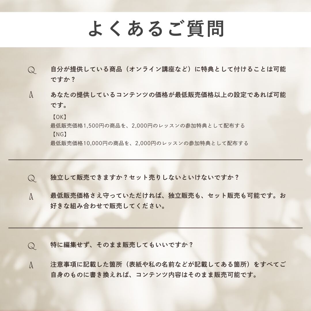 ※オンライン講座の教材や特典として配布する場合は、その講座の提供価格が2900円以上であれば問題ありません。