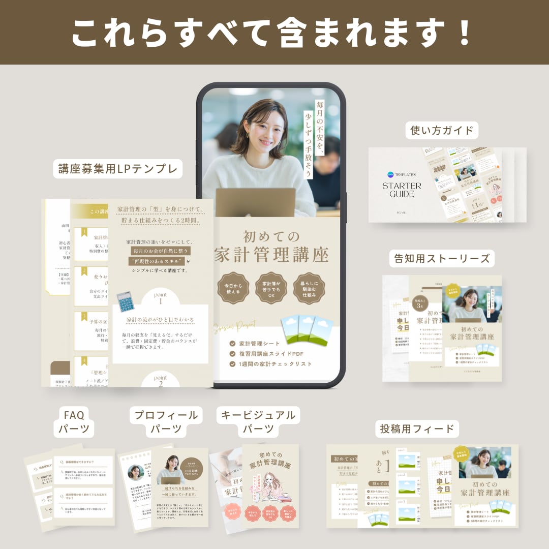 考えずに進められるテンプレートセットです。